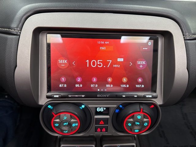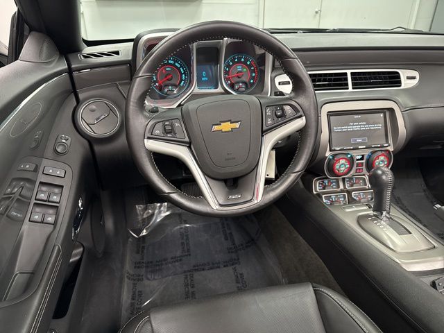 Preferred Equipment Group 2SS (2 Front Cup Holders, 3-Spoke Leather-Wrapped Steering Wheel, 4-Wheel Antilock 4-Wheel Disc Brakes, Analog Instrumentation, Auxiliary Multi-Function Gauges, Bluetooth® For Phone, Boston Acoustics Premium 8-Speaker System, Carpeted Front Floor Mats, Electric Rear-Window Defogger, Electronic Cruise Control, Head-Up Display, Heated Driver & Front Passenger Seats, LATCH System, Leather Seat Trim, Leather-Wrapped Shift Knob, Maintenance-Free Battery, Manual Rake & Telescopic Steering Column, OnStar 6 Months Directions & Connections Plan, Power Programmable Door Locks, Remote Keyless Entry, SIRIUSXM Satellite Radio, StabiliTrak, Stainless-Steel Dual-Outlet Exhaust, Steering Wheel Mounted Audio Controls, Tonneau Cover, Ultrasonic Rear Park Assist, Universal Home Remote, USB Port Audio System Feature, and Wireless PDIM), RS Package (High-Intensity Discharge Headlamps), 21" Machined Alum. W/Black Accents (LPO) Wheels, 3.27 Axle Ratio, 4-Wheel Disc Brakes, 9 Speakers, ABS brakes, Air Conditioning, AM/FM radio: SiriusXM, Auto-dimming door mirrors, Auto-dimming Rear-View mirror, Brake assist, Bumpers: body-color, CD player, Compass, Convertible roof lining, Delay-off headlights, Driver door bin, Driver vanity mirror, Dual front impact airbags, Dual front side impact airbags, Electronic Stability Control, Emergency communication system: OnStar Directions & Connections, Exterior Parking Camera Rear, Four wheel independent suspension, Front anti-roll bar, Front Bucket Seats, Front Center Armrest, Front fog lights, Front reading lights, Front Sport Bucket Seats, Fully automatic headlights, Garage door transmitter, Glass rear window, Heads-Up Display, Heated door mirrors, Heated front seats, Illuminated entry, Leather Seating Surfaces, Leather Shift Knob, Low tire pressure warning, Occupant sensing airbag, Outside temperature display, Panic alarm, Passenger door bin, Passenger vanity mirror, Power convertible roof, Power door mirrors, Power driver seat, Power passenger seat, Power steering, Power windows, Radio data system, Radio: AM/FM Stereo w/CD-ROM/MP3 Playback, Rear anti-roll bar, Rear window defroster, Remote keyless entry, Remote Vehicle Starter System, Security system, Speed control, Speed-sensing steering, Spoiler, Steering wheel mounted audio controls, Tachometer, Telescoping steering wheel, Tilt steering wheel, Traction control, Trip computer, Variably intermittent wipers, and Voltmeter.