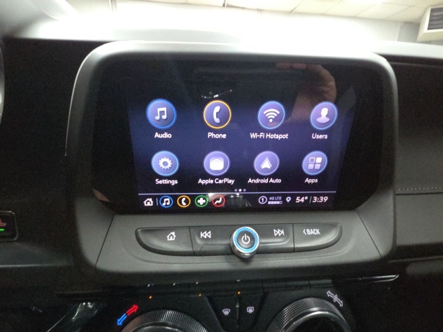 Preferred Equipment Group 1LT, RS Package (Dark Tint LED Tail Lamps and Decklid-Mounted Lip Spoiler), Technology Package (6-Speaker Audio System Feature, Bluetooth® For Phone, Bose Premium 9-Speaker Audio System Feature, Radio: Chevrolet Infotainment 3 Plus System, and SiriusXM w/360L), Wheels: 20" 5-Split Spoke Black Aluminum, 2.77 Rear Axle Ratio, 4-Wheel Disc Brakes, 6 Speakers, 6-Way Power Front Passenger Seat Adjuster, 8-Way Power Driver Seat Adjuster, ABS brakes, Air Conditioning, AM/FM radio: SiriusXM, Apple CarPlay/Android Auto, Automatic temperature control, Black Camaro Emblem Fender Badge, Black Exhaust Tip (LPO), Black Lug Nuts (LPO), Black Metallic Hash Mark Stripes (LPO), Brake assist, Bumpers: body-color, Cloth Seat Trim, Compass, Delay-off headlights, Driver door bin, Driver vanity mirror, Dual front impact airbags, Dual front side impact airbags, Electronic Stability Control, Exterior Parking Camera Rear, Four wheel independent suspension, Front anti-roll bar, Front Bucket Seats, Front Center Armrest, Front reading lights, Front Sport Bucket Seats, Fully automatic headlights, Illuminated entry, Knee airbag, Leather Shift Knob, Low tire pressure warning, Occupant sensing airbag, Overhead airbag, Paddle-Shift Manual Controls, Panic alarm, Passenger door bin, Passenger vanity mirror, Power door mirrors, Power driver seat, Power passenger seat, Power steering, Power Sunroof, Power windows, Premium audio system: Chevrolet Infotainment System, Radio data system, Radio: Chevrolet Infotainment 3 System, Rear anti-roll bar, Rear window defroster, Remote keyless entry, Remote Vehicle Starter System, Security system, SiriusXM, Speed control, Speed-sensing steering, Steering wheel mounted audio controls, Tachometer, Telescoping steering wheel, Tilt steering wheel, Tire Inflation Kit, Traction control, Trip computer, Variably intermittent wipers, and Voltmeter.