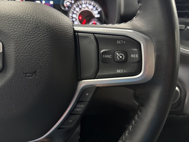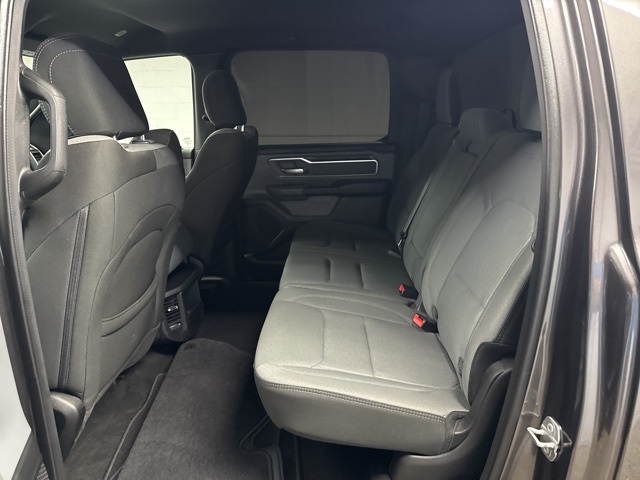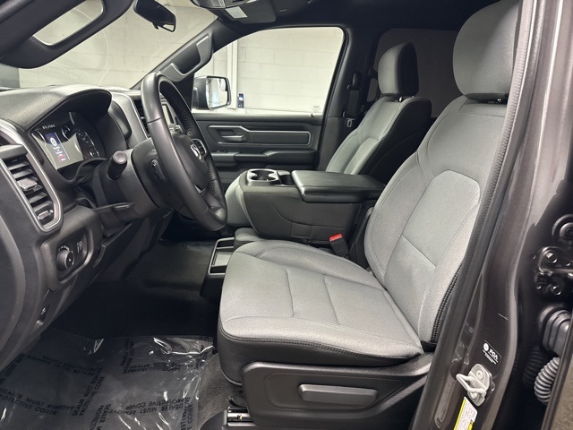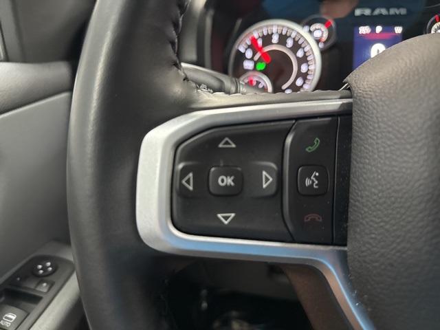 Quick Order Package 27Z Big Horn (Big Horn Badge), 23 Gallon Fuel Tank, 3 Rear Seat Head Restraints, 3.21 Rear Axle Ratio, 4 Way Front Headrests, 4-Wheel Disc Brakes, 48V Belt Starter Generator, 6 Speakers, ABS brakes, Air Conditioning, AM/FM radio, Black Exterior Mirrors, Brake assist, Bumpers: chrome, Cloth Bench Seat, Compass, Convex Wide-Angle Exterior Mirror Insert, Delay-off headlights, Driver door bin, Dual front impact airbags, Dual front side impact airbags, Electronic Stability Control, Emergency communication system: SiriusXM Guardian, Exterior Mirrors w/Heating Element, For Details, Visit DriveUconnect.com, Front anti-roll bar, Front Center Armrest w/Storage, Front License Plate Bracket, Front reading lights, Front Seat Back Map Pockets, Front wheel independent suspension, Fully automatic headlights, Global Telematics Box Module (TBM), GPS Antenna Input, Heated door mirrors, Illuminated entry, Integrated Voice Command w/Bluetooth, Leather steering wheel, Low tire pressure warning, Occupant sensing airbag, Outside temperature display, Overhead airbag, Overhead console, Panic alarm, ParkView Rear Back-Up Camera, Passenger door bin, Passenger vanity mirror, Power door mirrors, Power steering, Power windows, Radio data system, Radio: Uconnect 3 w/5" Display, RAM Grille Badge - Chrome, Rear 60/40 Folding Seat, Rear anti-roll bar, Rear seat center armrest, Rear step bumper, Remote keyless entry, Remote Start System, Speed control, Split folding rear seat, Steering wheel mounted audio controls, Tachometer, Telescoping steering wheel, Tilt steering wheel, Traction control, Trip computer, Variably intermittent wipers, Voltmeter, and Wheels: 18" x 8" Cast-Aluminum PainteD.